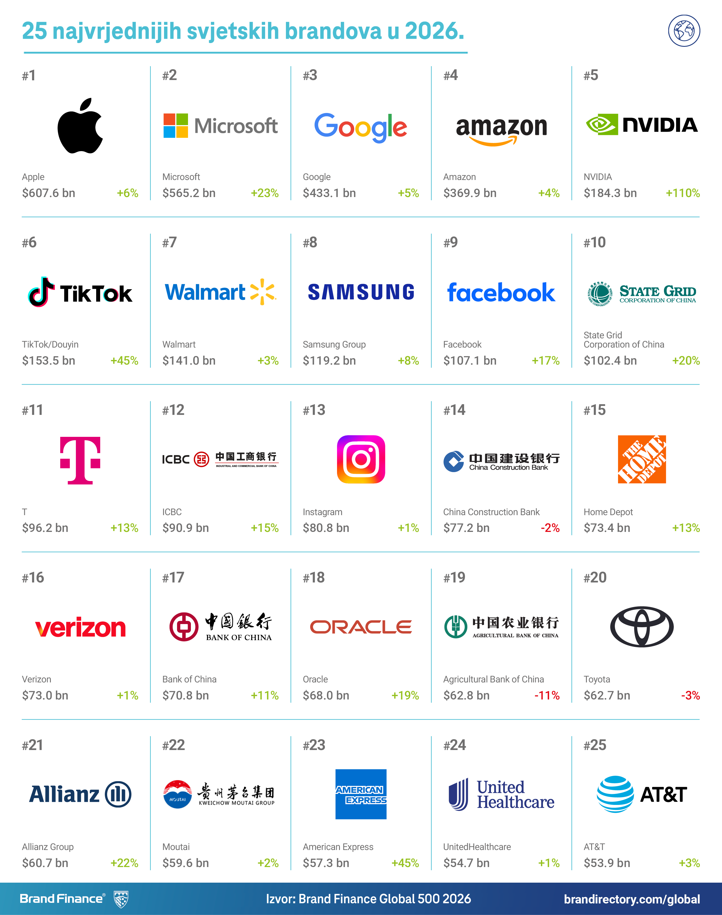 Brand Finance je globalno aktivan, neovisni institut za vrednovanje i analizu brendova sa sjedištem u Londonu. Institut objavljuje ljestvicu 500 najvrjednijih brendova na svijetu, temeljenu na njihovoj vrijednosti izraženoj u američkim dolarima.